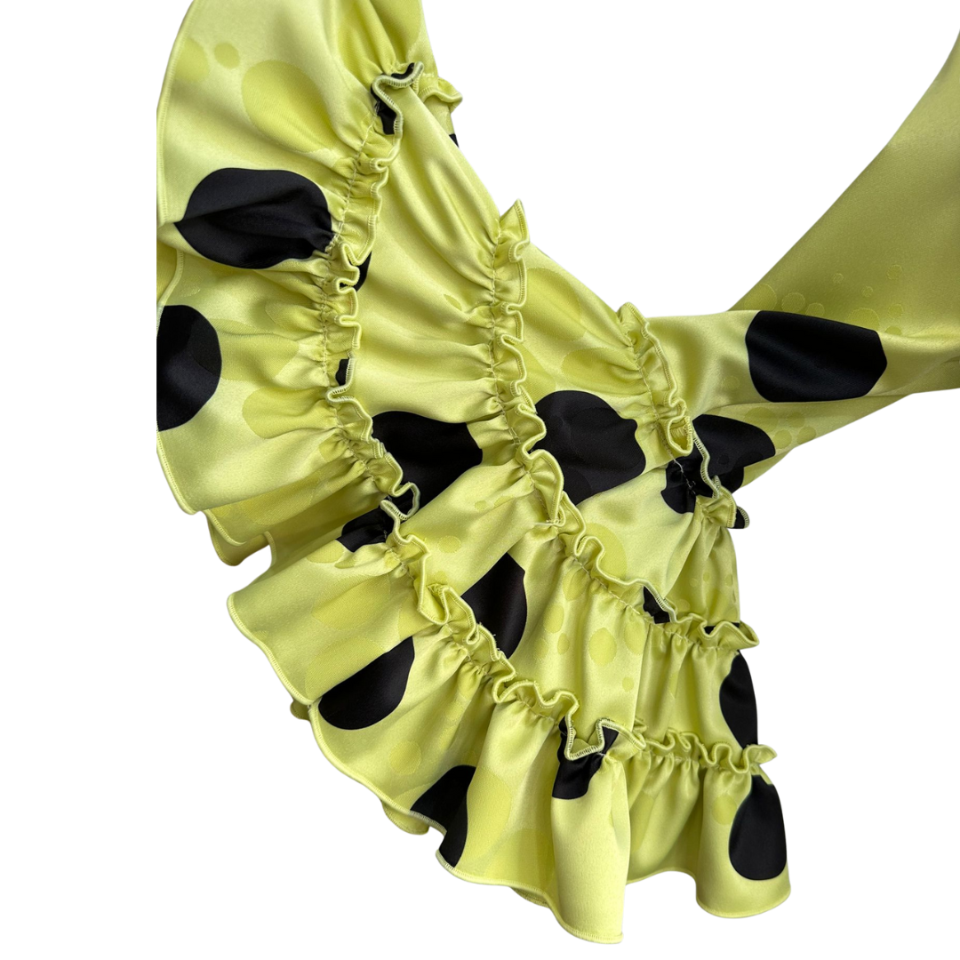 Su color vibrante ilumina al instante y crea un contraste potente con los lunares negros, dando un look llamativo pero muy estiloso.