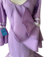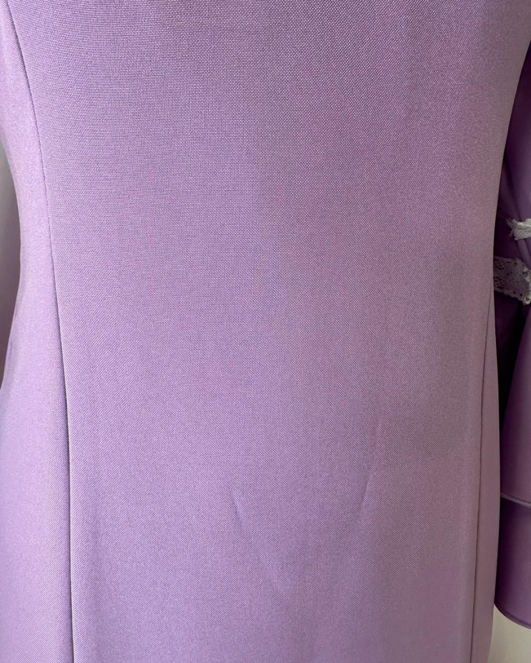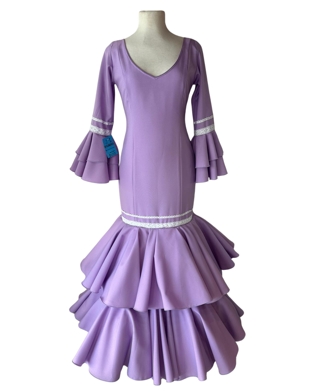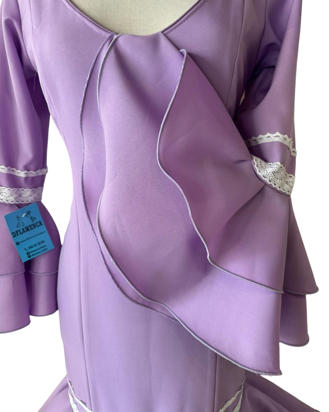 Con su color malva y los detalles en encaje de pasamanería lo hace un diseño exclusivo y caracteristico.