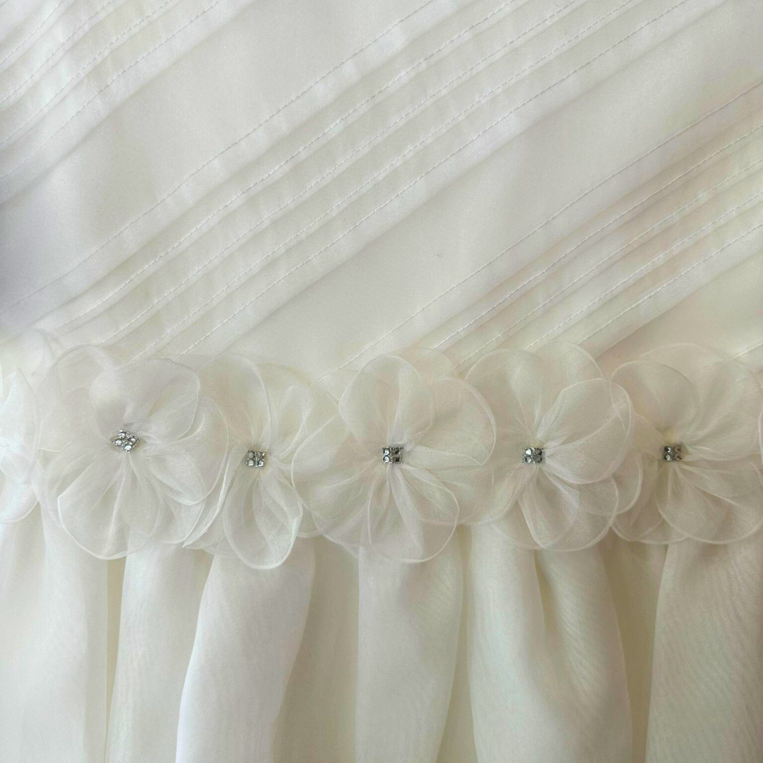 Precioso vestido de comunión talla 120 confeccionado con tejidos suaves y ligeros que garantizan comodidad durante todo el día. Su diseño clásico combina delicadeza y elegancia, con detalles cuidados que realzan la pureza y la ilusión de un día tan especial.